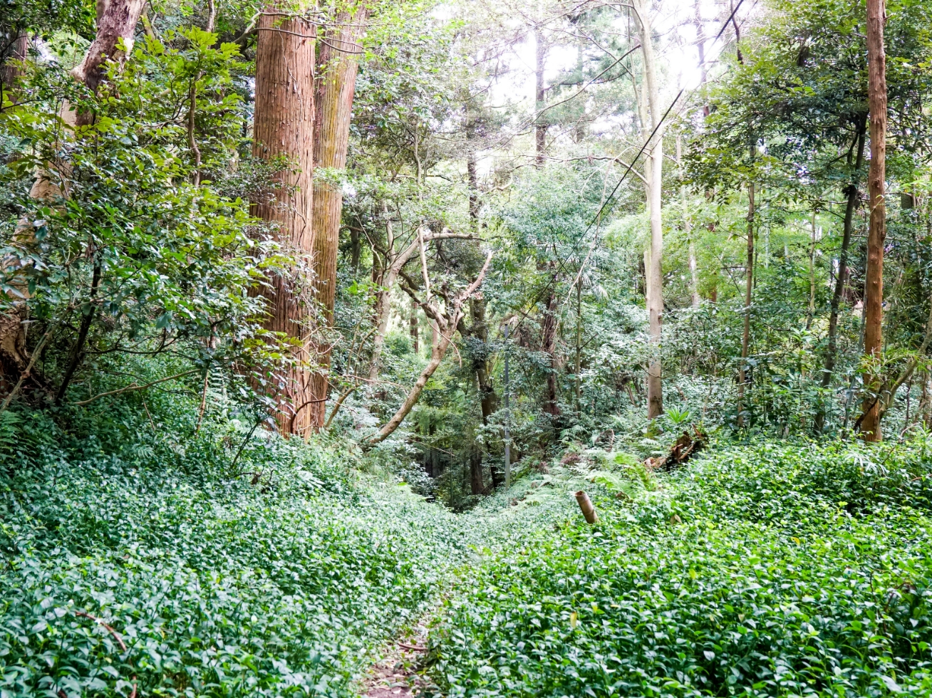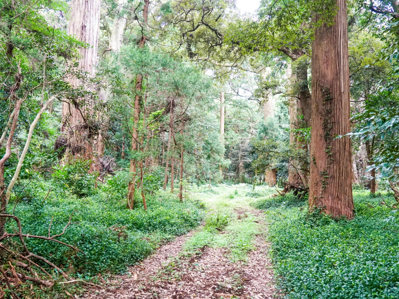 樹齢千余年という杉の木や常緑広葉樹が数多く生えています。